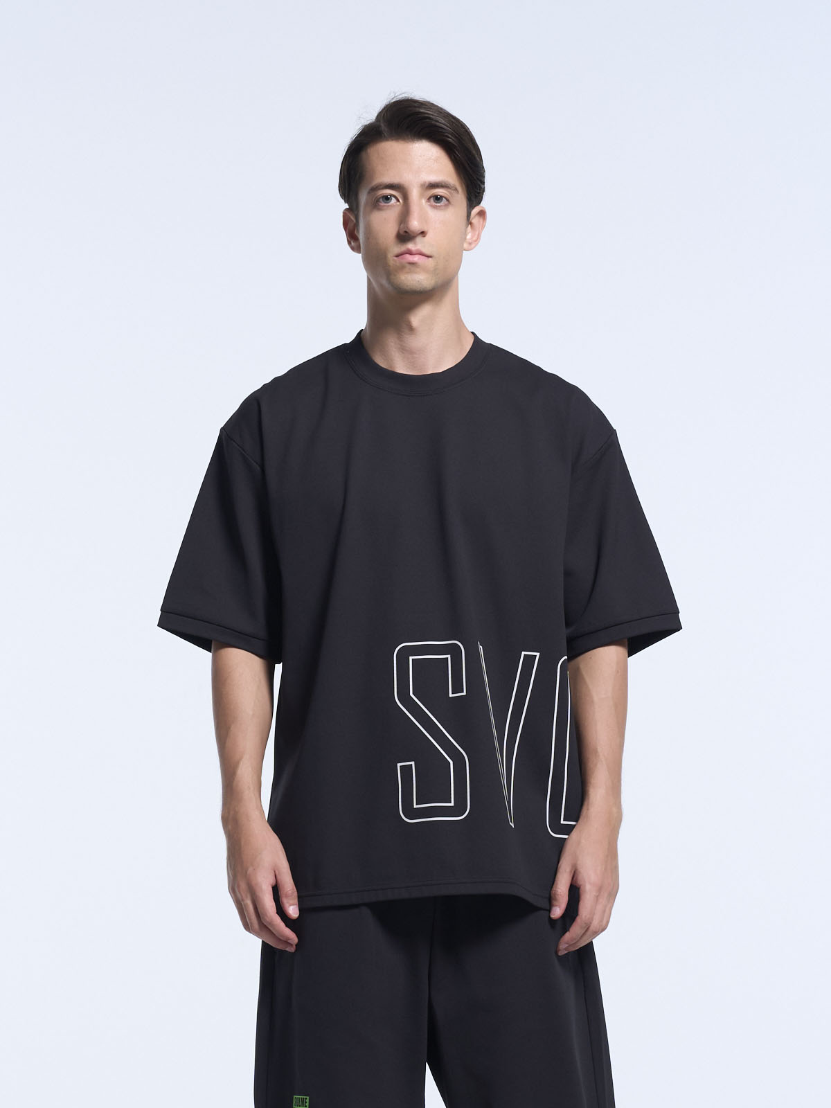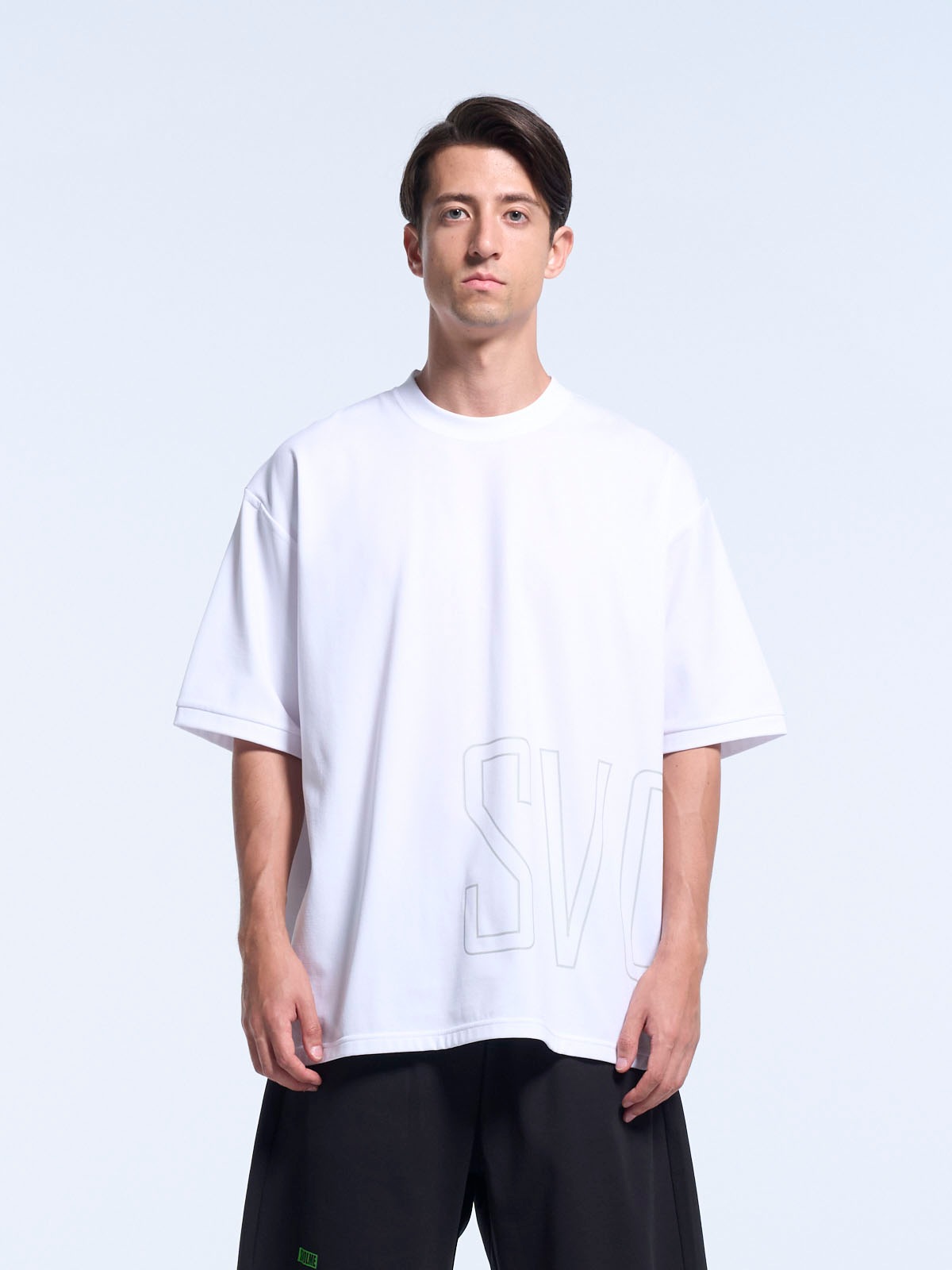 SVOLMEのビックロゴをプリントしたワイドTシャツ。特殊な糸をループ状に編み立てたスクラムテック素材を採用。肉厚で透けにくいのに、信じられないほど軽い。高い機能性と快適な着心地を両立させたカジュアルTシャツ。