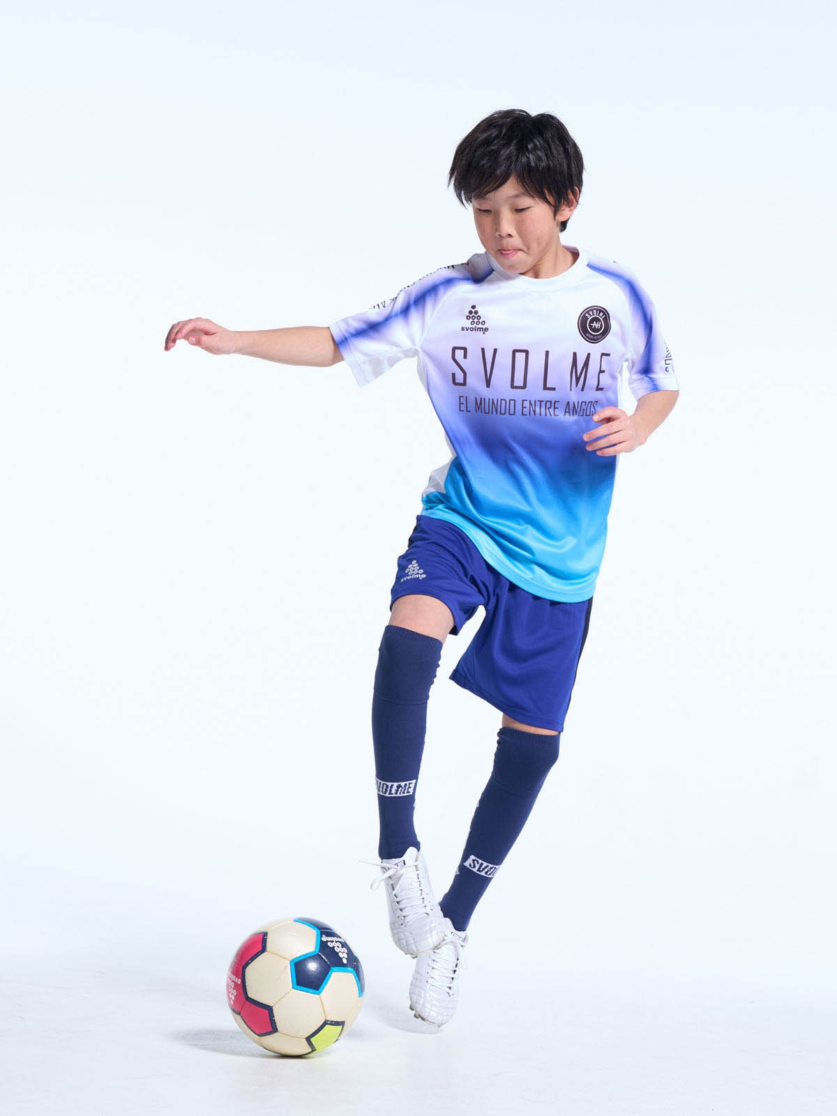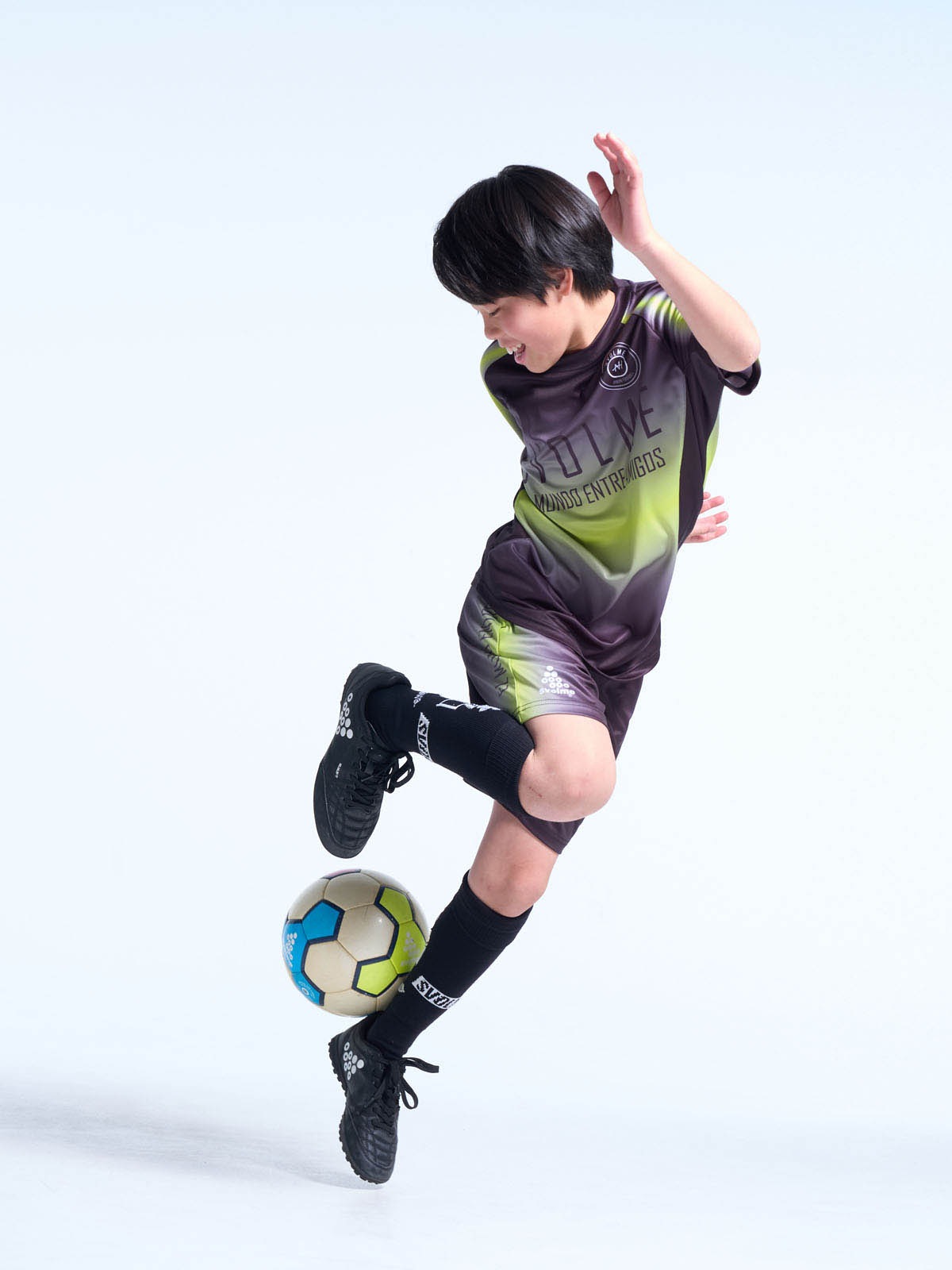 FOOTBALLプレイヤーのためにデザインされたトレーニングトップ。滑らかなグラデーションがシャツ全体に広がり、動きのある印象や立体感を演出。素材はリサイクルポリエステル100%のドライメッシュを採用。