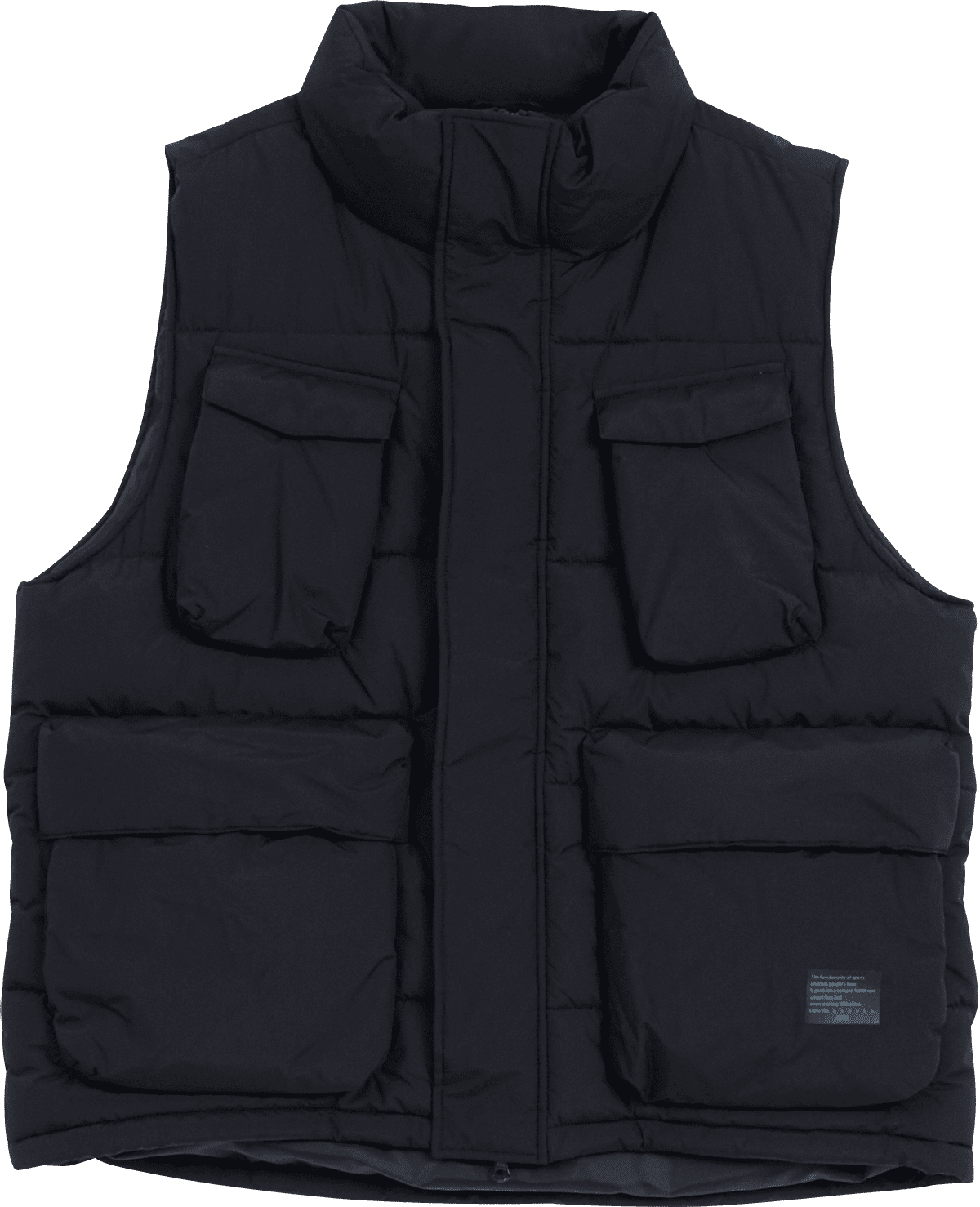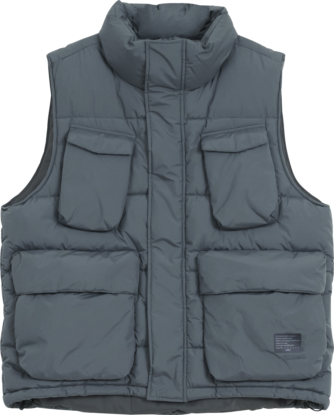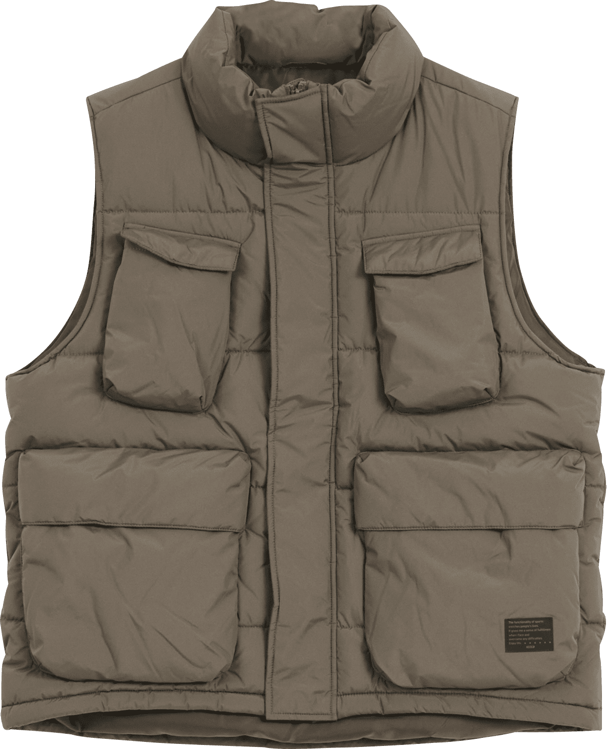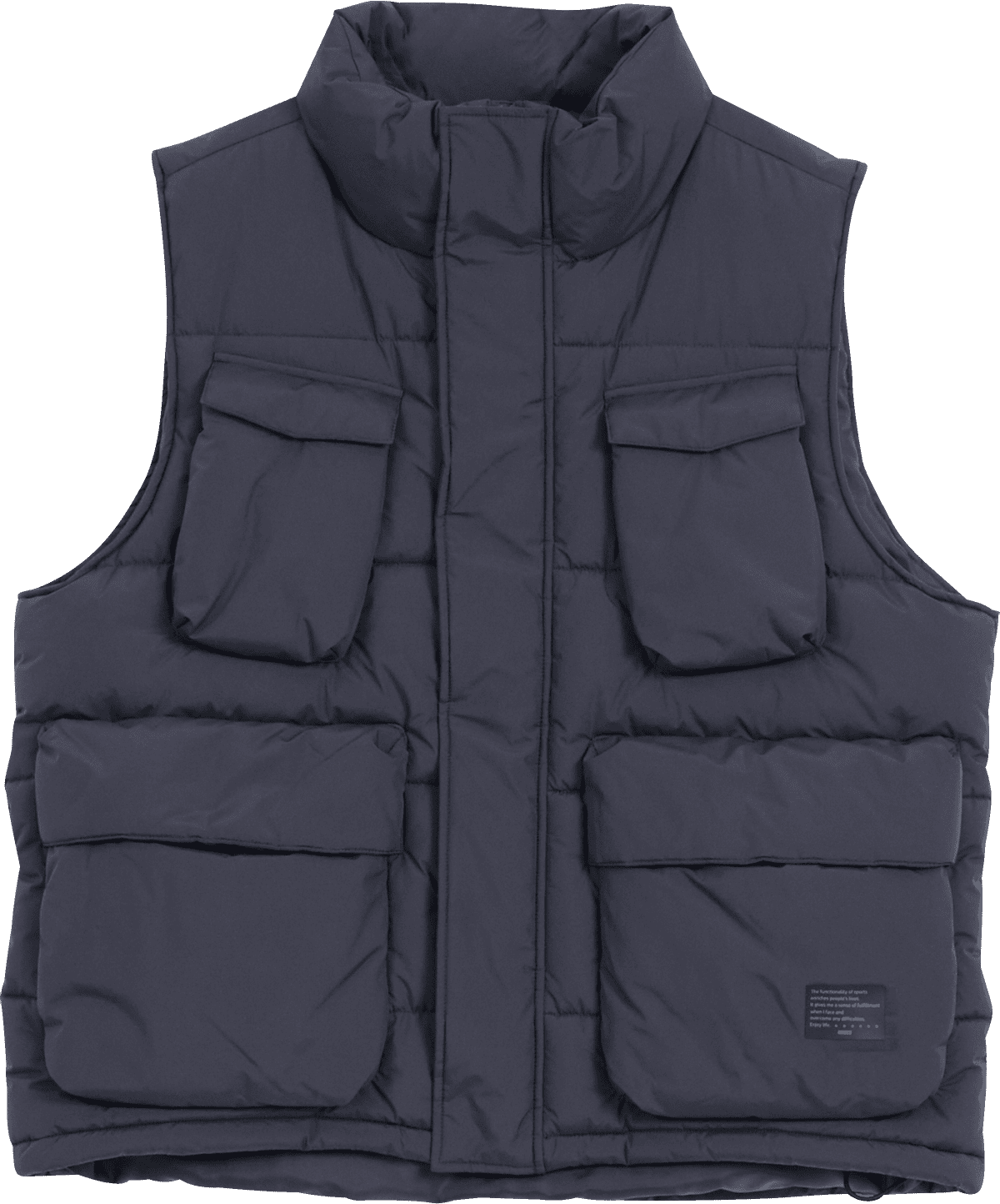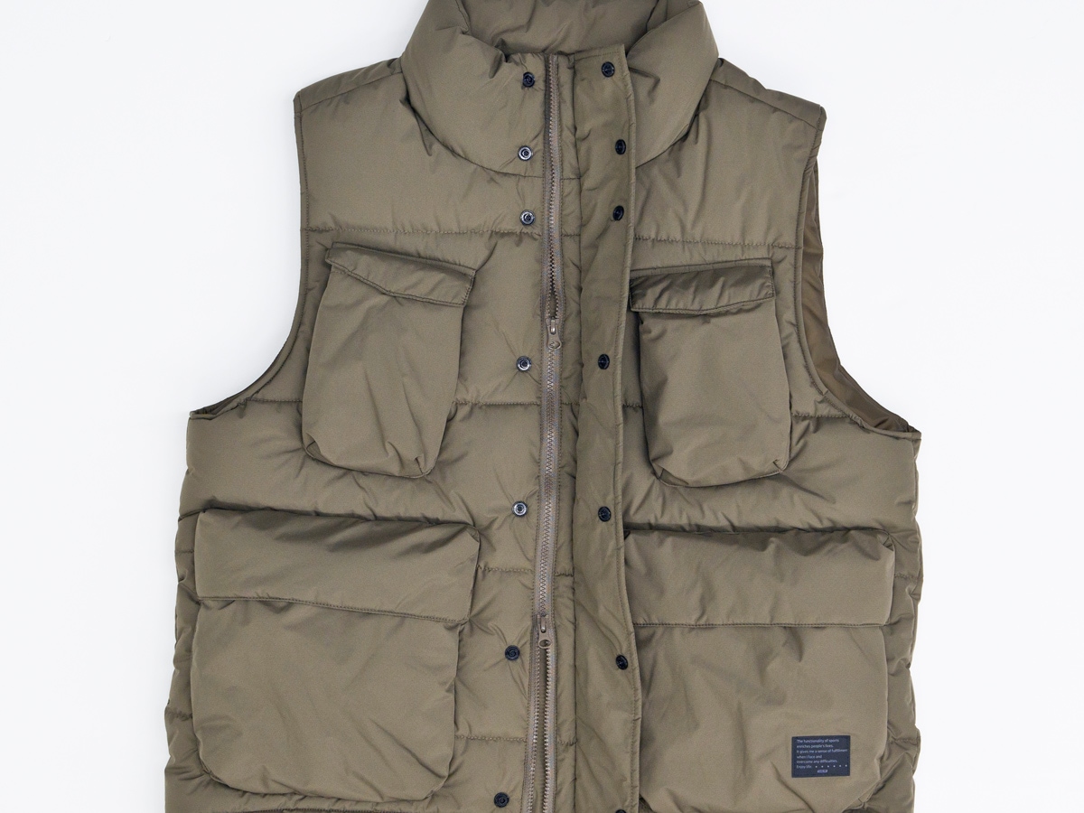 たくさんのポケットが特徴的な中綿ベスト。