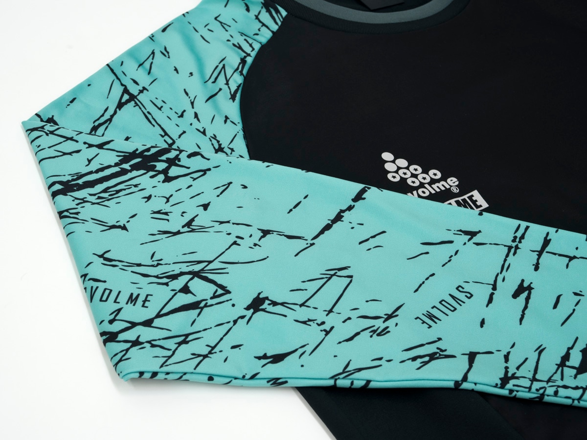袖のグラフィックが印象的な、冬仕様の長袖シャツ。