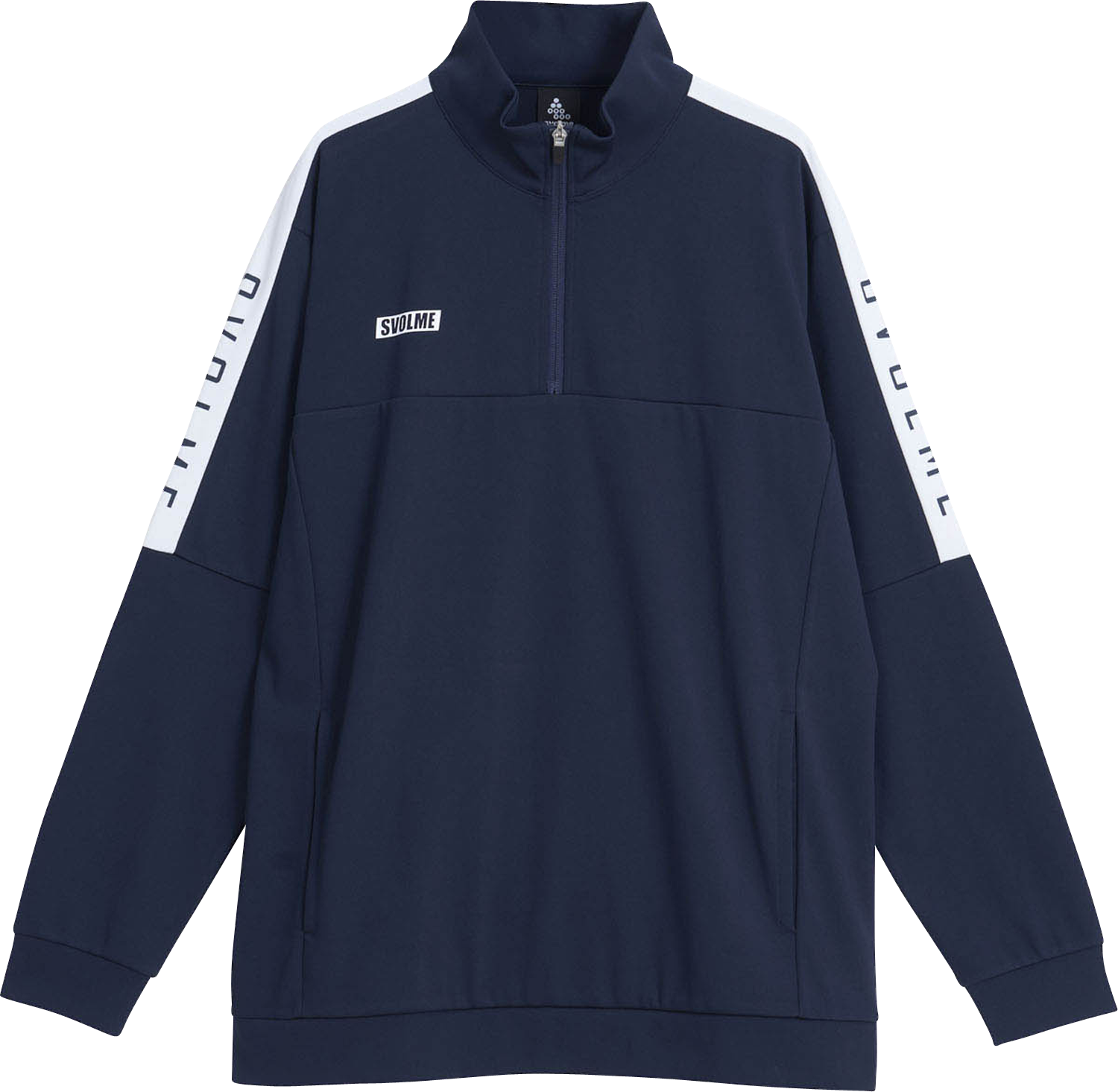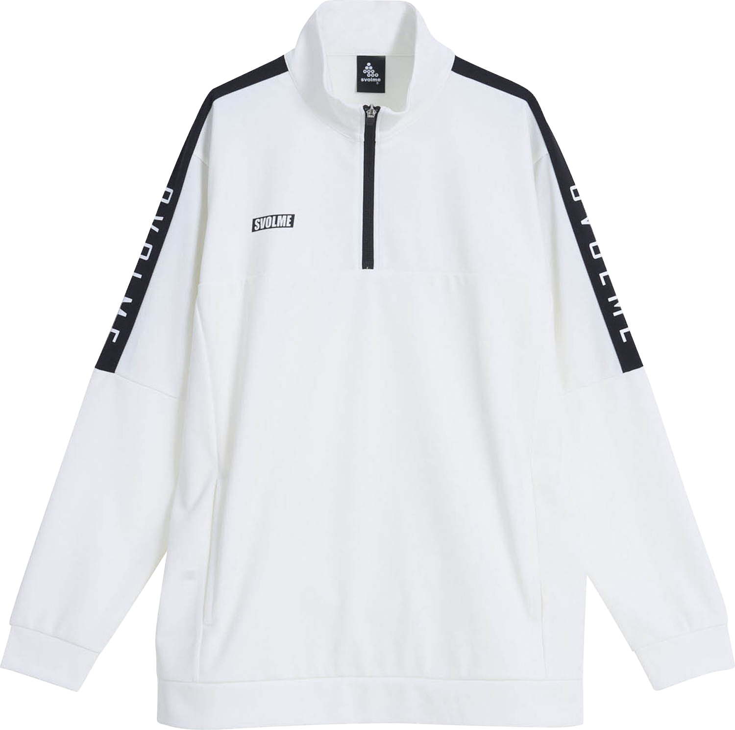 胸元まで開くハーフジップ仕様で、トレンド感のあるスタイルに。
