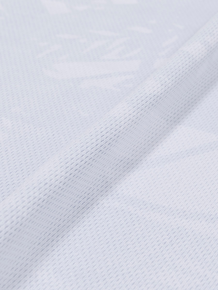リサイクルポリエステル100%のドライメッシュ素材を使用。吸汗速乾性とUVカットに加え、新たに抗菌防臭機能をプラス。より快適な着心地を実現。