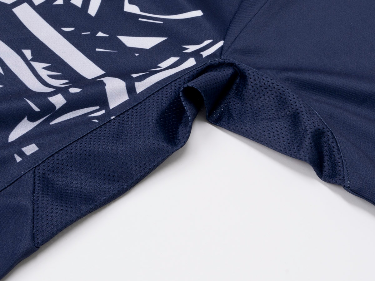 脇は通気性の高いメッシュ素材。