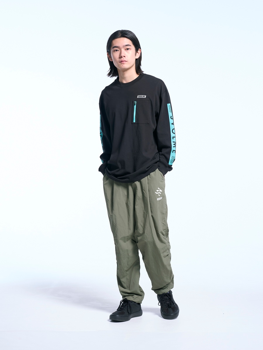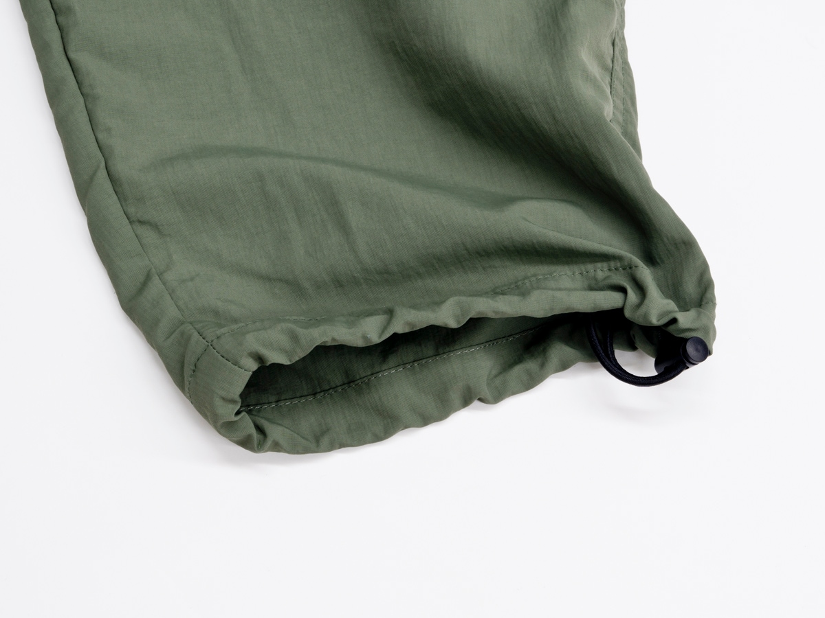 裾にはドローコードを備え、絞ることで足首まわりにアクセントが生まれ、シルエットに変化をつけられる。気分に合わせて着こなしの印象も変えられる。